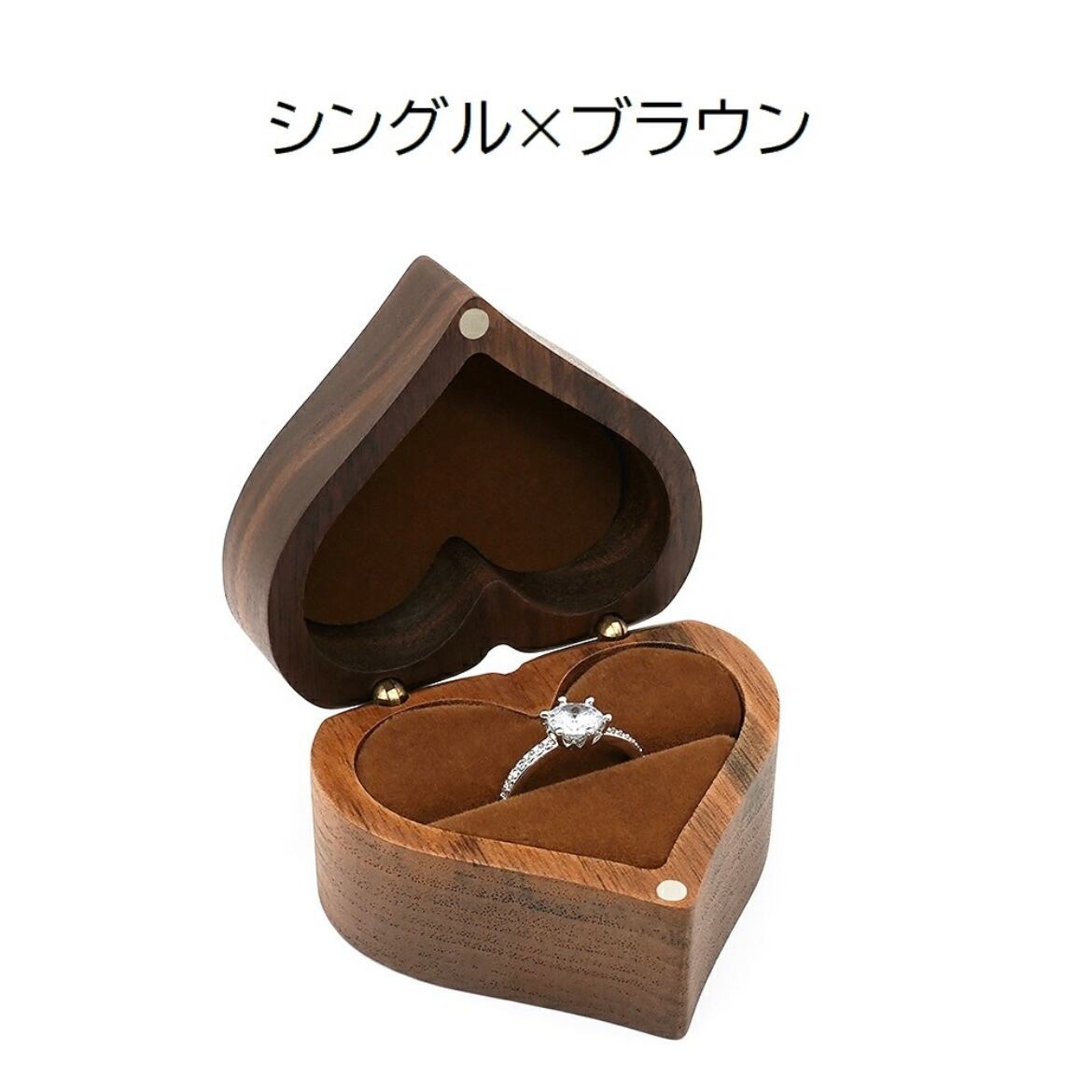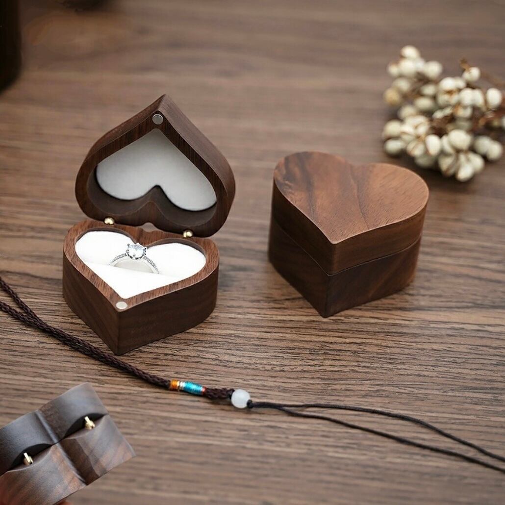 Love ハート型 指輪ケース かわいい リングケース 木製 小 指輪 収納 高級 小さい ミニサイズ おしゃれ アクセサリーケース ウールナット 指輪収納 持ち運び リングボックス ギフト
