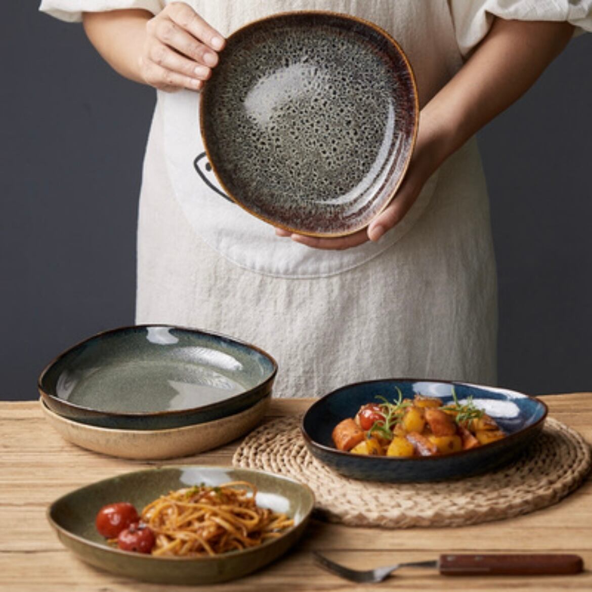 - くすみカラーが、和洋問わず様々なお料理にマッチし、どんな食シーンにも楽しさを添えます