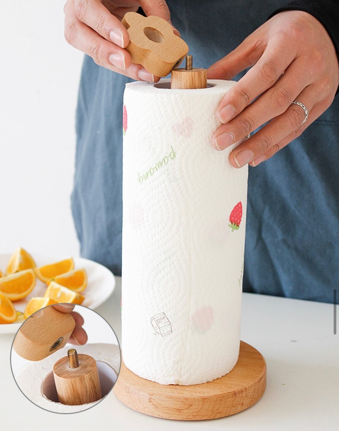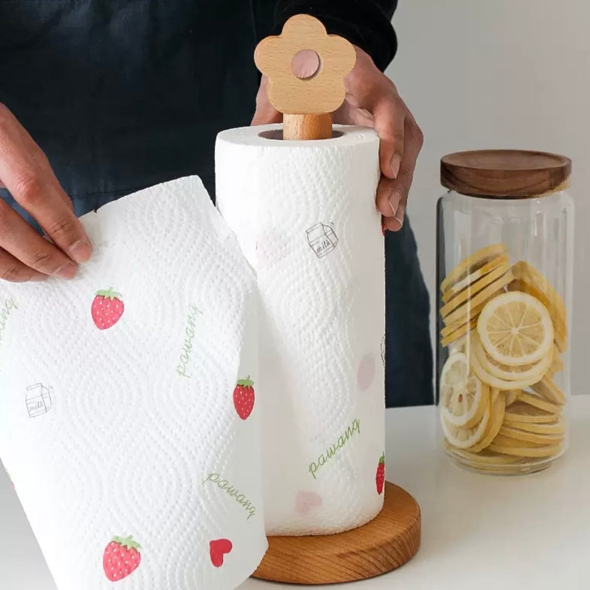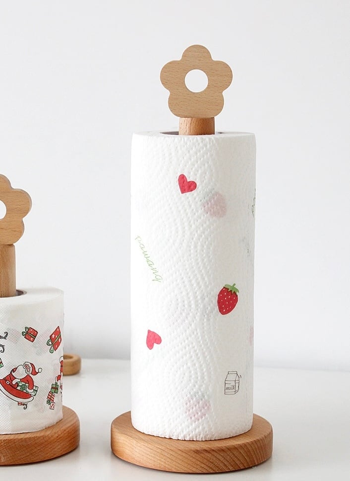 キッチンペーパーホルダー ペーパー スタンド 木製 ロール紙 縦置き 和風 小鳥 かわいい 滑り止め キッチン収納 テーブル 浴室 アクセサリー 日用品 新生活 プレセント