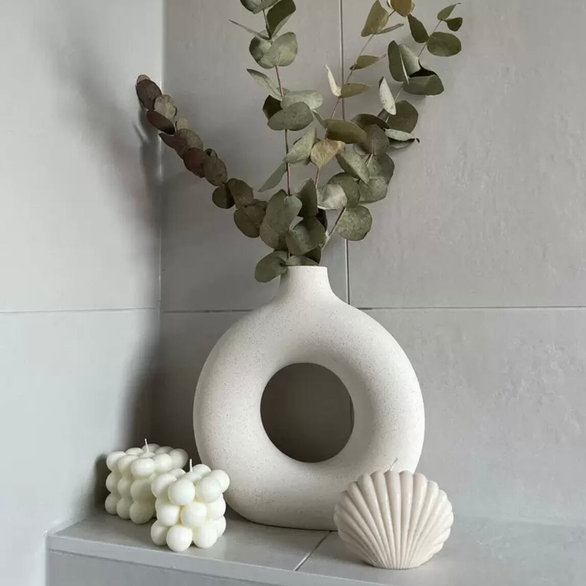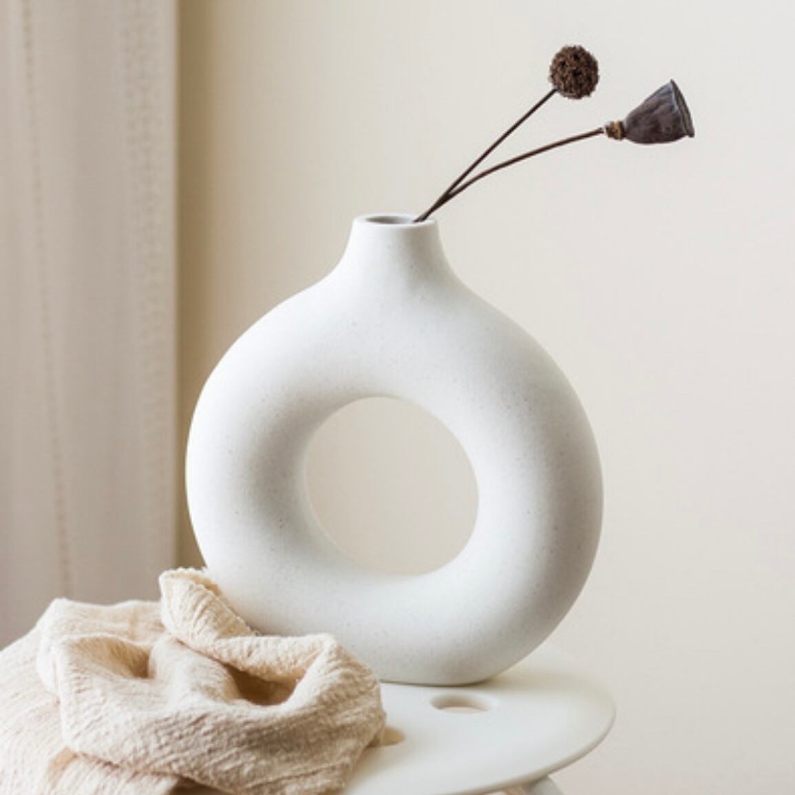 花瓶 セラミック フラワーベース ホワイト 丸 円形 一輪挿し 花 陶器 オブジェ 置物 ホーム デコレーション 韓国インテリア