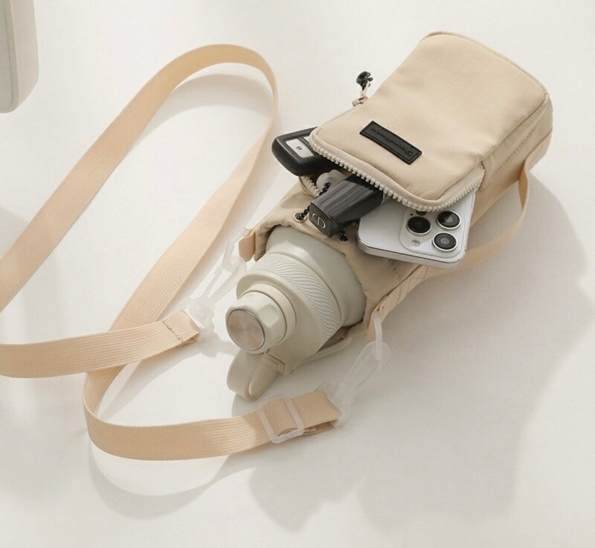 心地よい使い勝手を提供する「送料無料 ボトルホルダー ショルダーバッグ 肩掛け 斜め掛け 持ち手付き 小物入れ ポケット ミニショルダー 水筒ケース ドリンクホルダー マグホルダー スマホポーチ かわいい 便利 シンプル」です!この商品は、毎日の外出やレジャーシーンにぴったりの機能的なデザインで、使いやすさを追求しています。